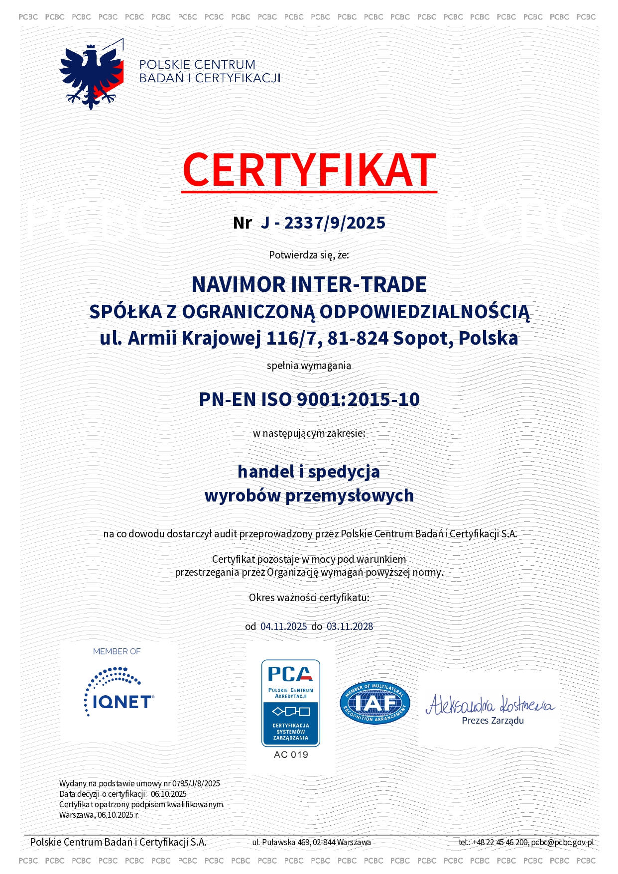 Firma Navimor Inter-Trade jest obecna na międzynarodowym rynku wyrobów przemysłowych od 1995 roku. Naszym celem jest dostarczanie wysokiej jakości, konkurencyjnych cenowo produktów i usług. Dzięki znajomości międzynarodowego rynku możemy dostosować naszą ofertę